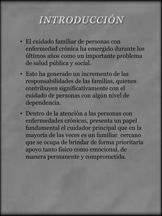 El control de salud de 3 niños reveló retrasos en su desarrollo. La cuidadora principal, una señora de 56 años, se encuentra cansada y agotada debido a que cuida de su esposo enfermo, su madre postrada de 97 años, y sus 3 nietos, dentro de una familia disfuncional con problemas de alcoholismo, violencia y falta de recursos económicos. La enfermera debe comenzar el proceso de valoración para identificar los problemas y necesidades de esta familia.