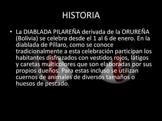 La Diablada Pillareña es una celebración que se lleva a cabo del 1 al 6 de enero en Píllaro, Ecuador. Los habitantes se disfrazan de diablos con vestidos rojos, máscaras y látigos elaborados por ellos mismos para bailar al son de la banda del pueblo desde las comunidades hasta el centro de la ciudad. Originalmente, las diabladas no tenían el propósito de ser un espectáculo sino rituales que combinaban lo lúdico con una esperanza de libertad, aunque este significado se ha perdido para las