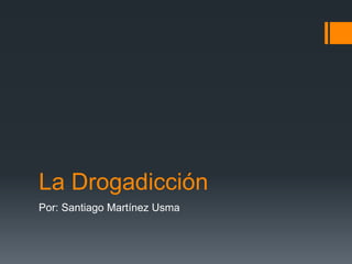 El documento resume los principales tipos de drogadicciones, incluyendo cocaína, éxtasis, heroína, inhalantes, LSD, marihuana y esteroides. Explica los efectos y riesgos que conlleva cada droga, así como las formas comunes de consumo que pueden conducir a la dependencia física y psicológica.