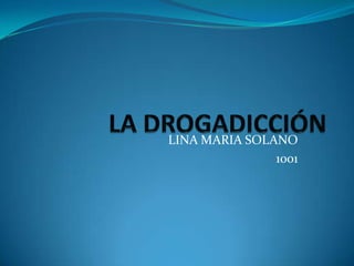 La drogadicción es una enfermedad causada por la dependencia a sustancias que afectan el sistema nervioso central y las funciones cerebrales, alterando el comportamiento, la percepción y las emociones. Existen dos tipos de drogadicción: la dependencia física, que causa síntomas de abstinencia al interrumpir el consumo, y la dependencia psíquica, que genera una necesidad imperiosa de consumir para evitar el malestar o obtener placer. Las drogas pueden producir alucinaciones, alterar los sentidos y l