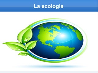 La ecología estudia las interacciones entre organismos y su ambiente, incluyendo factores abióticos como el clima y factores bióticos como las relaciones entre organismos. Examina conceptos como cadenas tróficas, flujos de energía, tasas de renovación, y ecosistemas. La ecología cultural estudia las relaciones entre sociedades humanas y sus ecosistemas.