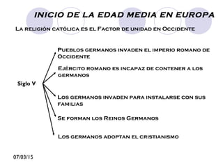 El documento resume la llegada de los pueblos germánicos a la península ibérica y la formación de los reinos visigodos tras la caída del Imperio Romano de Occidente. Explica que los visigodos adoptaron el cristianismo y establecieron un reino en la península que duró hasta el siglo VIII, cuando los musulmanes invadieron la península en el 711 d.C. Luego se inició un proceso de reconquista por parte de los reinos cristianos que duró hasta 1492