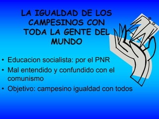 El documento aborda la educación socialista en México, resaltando la búsqueda de igualdad para los campesinos y los desafíos enfrentados por los maestros rurales. A través de diversas vivencias, se destaca la lucha contra el fanatismo y la falta de preparación ideológica y pedagógica por parte de los docentes. Se concluye que ser maestro rural en esta época implicó una ardua batalla por la implementación de un sistema educativo laico y gratuito frente a diversos adversidades.