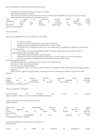 3. En caso de accidente con electricidad, los pasos son llamar a emerg
