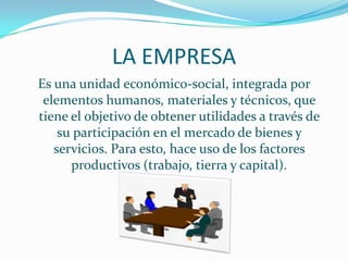 Este documento resume los tipos de empresas, incluyendo privadas, públicas, pequeñas, medianas y grandes empresas. También describe empresas industriales, comerciales y de servicios. Explica que la administración es fundamental para el éxito de una empresa a través de la planificación, organización, control y evaluación. Finalmente, destaca que la calidad total requiere que las empresas eduquen a sus trabajadores y se enfoquen en los valores morales para lograr la máxima satisfacción de los clientes.