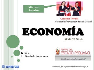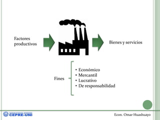 El documento presenta un resumen del curso de Teoría de la Empresa impartido por el profesor Omar Huashuayo. Se define la empresa, sus tipos según sus fines y tamaño. Se explican los conceptos de microempresa, mypes, mediana y gran empresa según el número de trabajadores y ventas anuales. Finalmente, se describen los tipos de empresa individual y societaria, incluyendo ejemplos como S.A., S.R.L. entre otras.
