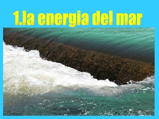 Este documento describe tres formas de energía del mar: la energía mareomotriz, que se obtiene de las diferencias en la altura de las mareas; la energía maremotérmica, basada en el gradiente térmico entre la superficie y las aguas profundas; y la energía undimotriz de las olas. Explica cómo se pueden aprovechar estas energías mediante sistemas mecánicos acoplados a generadores eléctricos, produciendo electricidad renovable. También resume las ventajas e inconvenientes de cada forma