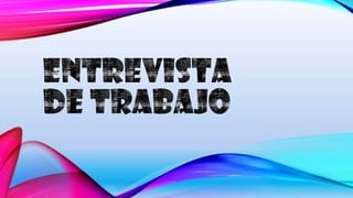 La entrevista laboral es una parte importante del proceso de selección donde después de enviar el currículum se evaluará al candidato mediante preguntas. Es importante llegar puntual con un atuendo formal, saludar educadamente manteniendo buena postura y contacto visual, escuchar atentamente las preguntas y responder con sinceridad y confianza sin hablar en exceso o de forma negativa sobre empleos anteriores, siempre mostrando respeto. Al final agradecer y despedirse educadamente.