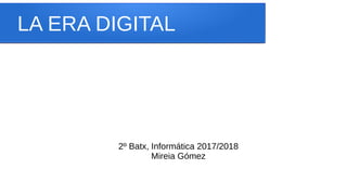 Este documento resume los principales aspectos de la era digital. Explica cómo Internet ha conectado al mundo y ha permitido el trabajo colaborativo a través de plataformas como la Web 2.0. También describe cómo se produce y organiza la información digital, el papel de las redes sociales, el comercio electrónico y los riesgos en línea como el ciberacoso.