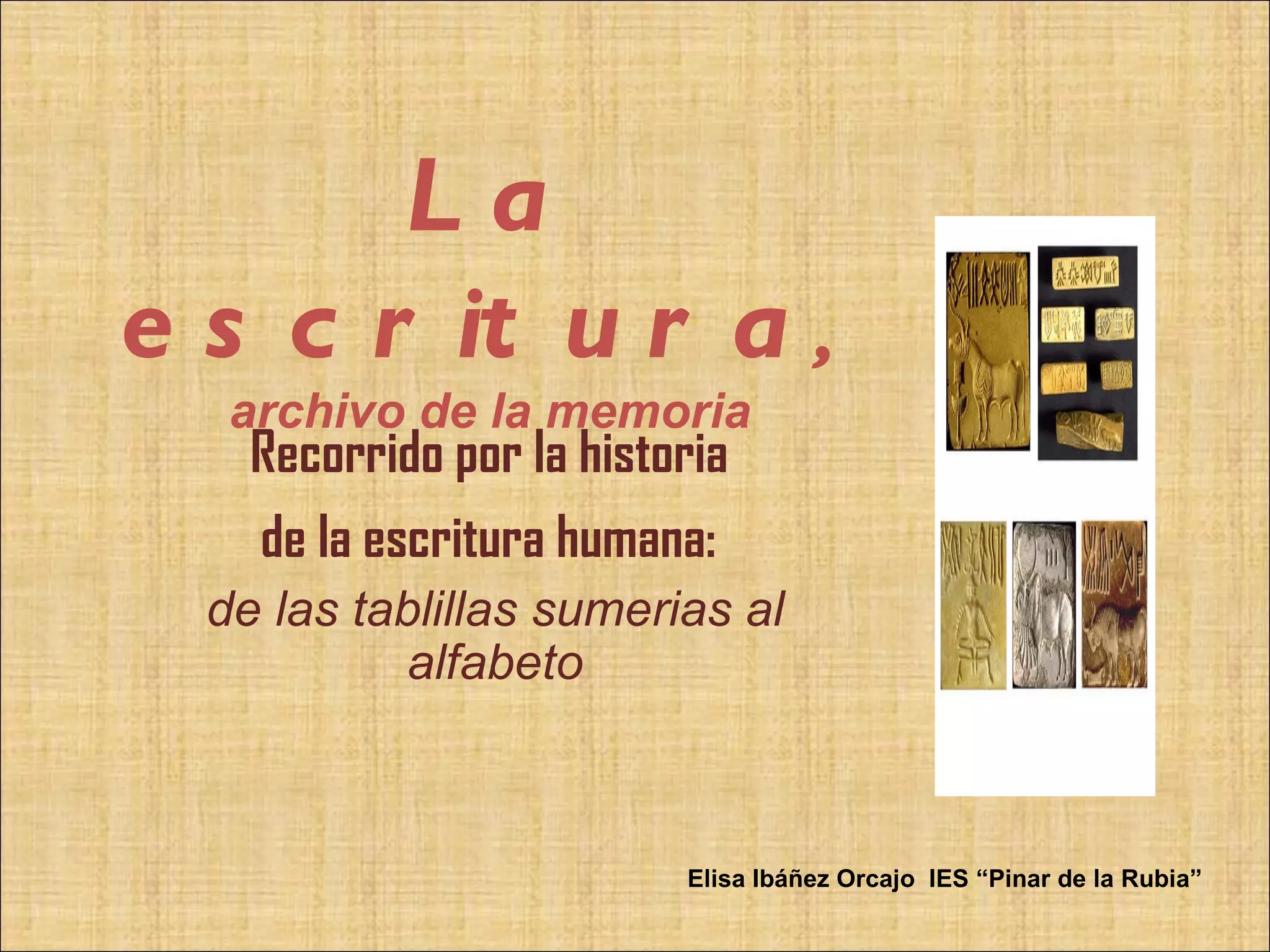 Este documento resume la evolución de la escritura desde las primeras tablillas sumerias hasta el alfabeto latino. Comienza con las primeras formas de escritura logográficas y silábicas en Mesopotamia y otras culturas antiguas, luego describe el desarrollo de los jeroglíficos egipcios y su desciframiento. Finalmente, explica el surgimiento del alfabeto fenicio y su adopción por los griegos y romanos, dando lugar al alfabeto latino.