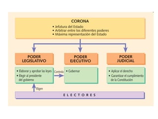 El documento describe el período de transición a la democracia en España después de la muerte de Franco, incluyendo la aprobación de la Constitución de 1978 que estableció un sistema democrático, la creación de comunidades autónomas, y el gobierno de Adolfo Suárez. Sin embargo, hubo tensiones debido al terrorismo de grupos como GRAPO, ETA y la ultraderecha, lo que llevó a la matanza de abogados en la calle Atocha y finalmente al golpe de Estado del 23 de febrero de 1981.