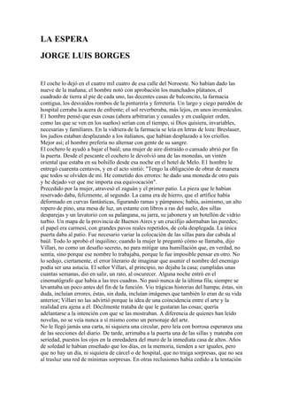 En 'La espera' de Jorge Luis Borges, el protagonista, Alejandro Villari, reflexiona sobre su vida en reclusión y su lucha interna con la identidad y el tiempo. A medida que Villari se adapta a su entorno, interacciones cotidianas y recuerdos se mezclan, revelando su deseo de perdurar y de vivir en el presente sin ser arrastrado por su pasado. La historia culmina en un encuentro fatal con sus perseguidores, dejando al lector cuestionando la naturaleza de la realidad y los sueños.