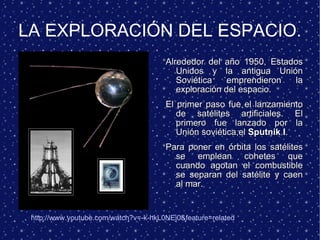 La exploración espacial ha evolucionado desde la observación del cielo a simple vista y con telescopios, hasta el uso de naves espaciales no tripuladas y satélites artificiales para explorar el universo. Estados Unidos y la Unión Soviética iniciaron la era espacial en la década de 1950 mediante el lanzamiento de satélites. En 1969, Neil Armstrong se convirtió en la primera persona en caminar sobre la Luna a bordo de la nave Apolo 11. Actualmente, las sondas espaciales y los satélites artificiales se util