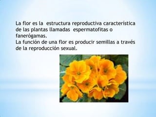 La flor produce semillas a través de la reproducción sexual. La polinización transfiere el polen del aparato masculino de las plantas al femenino y puede ocurrir por el viento, de forma autónoma o a través de animales.