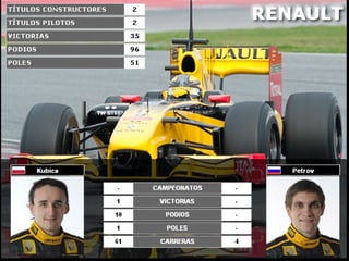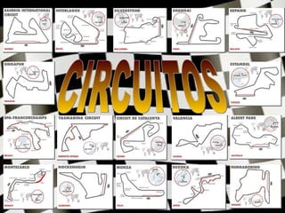 El documento proporciona información sobre varios circuitos de carreras importantes alrededor del mundo, incluyendo detalles sobre su ubicación, características del trazado, y eventos relevantes de automovilismo que albergan. Los circuitos mencionados incluyen Melbourne, Bahréin, Cataluña, Estambul, Hungaroring, Hockenheim, Interlagos, Montecarlo, Monza, Sepang, Shanghái, Suzuka y Spa.
