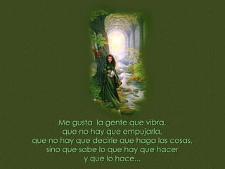 Este documento describe las cualidades que le gustan en la gente a Mario Benedetti. Le gusta la gente que es proactiva, que mide las consecuencias de sus acciones y no deja las soluciones al azar, que es justa con los demás y consigo misma y que no busca culpar ni descalificar a otros. También le gusta la gente inteligente, que valora el trabajo en equipo, que juzga a los demás por sus actos y no por rumores, y que aprecia la importancia de la alegría.