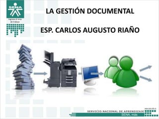 Este documento describe los conceptos y procesos fundamentales de la gestión documental, incluyendo la producción, recepción, distribución, trámite, organización y conservación de documentos. Explica cada uno de estos procesos archivísticos, sus características y actividades clave para un sistema manual de gestión documental. El objetivo es abordar los aspectos conceptuales, metodológicos y normativos de la gestión documental.