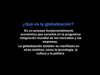 El documento resume los principales aspectos de la globalización y cómo se manifiestan en la vida cotidiana. Explica que la globalización es un proceso de integración económica mundial que también tiene impactos en la tecnología, cultura y política. Se percibe en la vida diaria a través del uso de nuevas tecnologías, compras en línea, y la difusión de costumbres culturales. Sin embargo, también genera problemas como desigualdades sociales, deterioro ambiental, y el surgimiento de movimientos fundamentalistas.