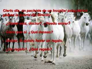 Un paciente en un hospital psiquiátrico le regala a su director un libro que él mismo escribió titulado "La gran cabalgada". Cuando el director empieza a leer el libro, se da cuenta de que sólo contiene la palabra "tocotó" repetida en todas sus páginas.