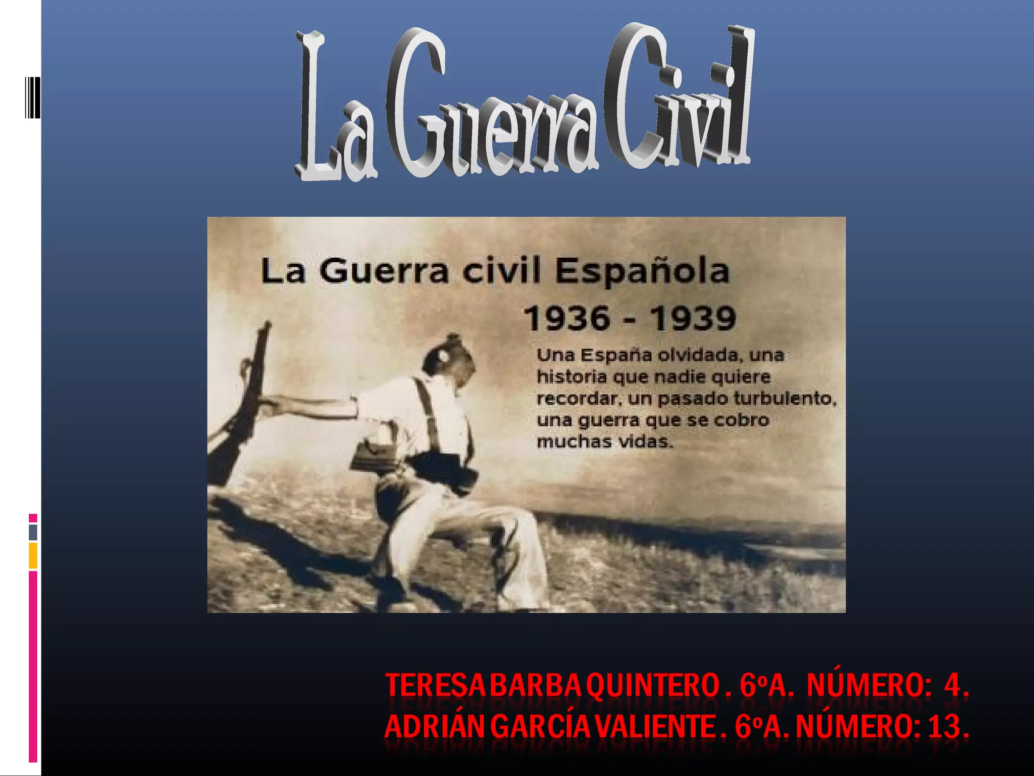 El documento resume la Guerra Civil Española que ocurrió entre 1936 y 1939 cuando los militares se levantaron contra la República. El bando sublevado, liderado por Francisco Franco, derrotó al bando republicano, resultando en más de medio millón de muertes y cientos de miles de exiliados. La guerra tuvo consecuencias económicas devastadoras para España y llevó a "años de hambre" en la década de 1940.