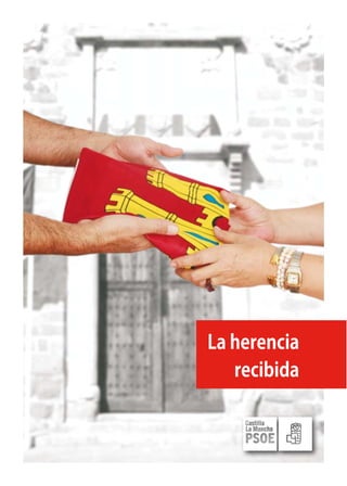 El documento resume los logros del anterior gobierno socialista de Castilla-La Mancha entre 2010-2011 en educación, sanidad, dependencia, obra pública y empleo, incluyendo mayores inversiones y mejoras en estos sectores. Sin embargo, tras las elecciones de 2011, el nuevo gobierno de Cospedal inició recortes como despidos de profesores, privatización de servicios sanitarios, y paralización de obras públicas.