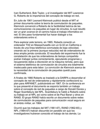 Internet surgió de un proyecto militar estadounidense para apoyar a sus fuerzas armadas y luego fue utilizado por el gobierno, universidades y centros académicos. Se desarrolló a partir de trabajos paralelos en el MIT, RAND y NPL sobre teoría de conmutación de paquetes y redes de ordenadores. El proyecto ARPANET conectó los primeros nodos en 1969 entre la UCLA, SRI e instituciones académicas, dando los primeros pasos hacia lo que hoy conocemos como Internet.