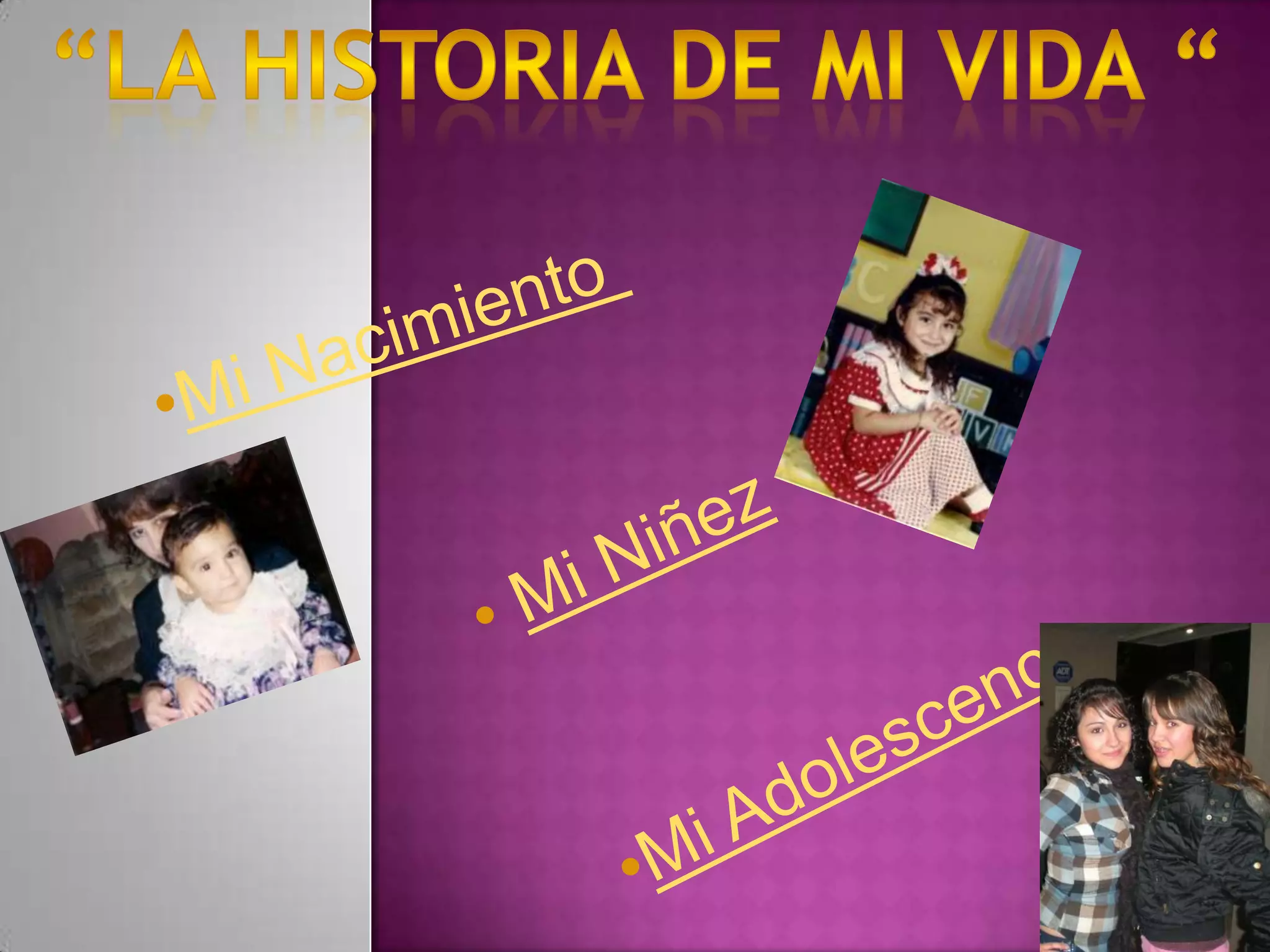 El documento narra la vida de una persona desde su infancia hasta su etapa universitaria, destacando momentos felices con su familia y amigos. Se menciona su experiencia en el kínder, la primera comunión, fiestas de XV años, y recuerdos de vacaciones en Cancún y San Luis Potosí. Actualmente, se encuentra estudiando en la FCC, donde ha establecido amistades significativas.