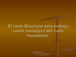 El documento describe la situación financiera del imán Bouziane y sus dos esposas que viven en Francia. Bouziane tiene un total de 16 hijos con sus dos esposas. Detalla los diferentes subsidios y ayudas económicas que reciben cada una de las esposas e hijos del imán, ascendiendo los ingresos totales de la familia a casi 9,000 euros al mes provenientes del estado francés.