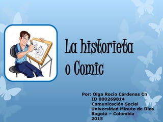 El documento analiza los elementos que componen los cómics, incluyendo viñetas, dibujos, texto, globos y onomatopeyas. Explica que los cómics son un medio de comunicación que narran una historia a través de una secuencia de imágenes. También discute la influencia visual de los cómics y cómo reflejan la sociedad, cumpliendo funciones informativas, formativas y de entretenimiento.