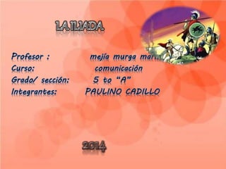 La Ilíada es la obra épica más importante de la literatura griega antigua. Narra eventos del último año de la guerra de Troya y se centra en la cólera de Aquiles y sus consecuencias. Aunque la existencia real de Homero es incierta, la obra presenta una visión sofisticada de las interacciones entre dioses y humanos en la antigua Grecia.