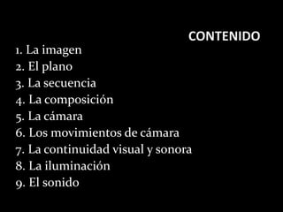 Este documento describe los elementos fundamentales de la imagen y la composición en la televisión. Explica conceptos como el plano, la secuencia, la cámara y los ángulos. Además, destaca que la imagen es una forma de comunicar y construir sentido, y debe usarse para narrar e ir más allá de lo evidente. Por último, enfatiza la importancia de la composición a través del uso del encuadre, el contraste, el equilibrio y las líneas para atraer la atención del televidente.