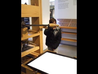 El documento resume brevemente la historia del libro e imprenta. Explica que la escritura surgió en el 1800 a.C. en Egipto y que los chinos inventaron la impresión con planchas de madera en el siglo XI. En el siglo XV, Johannes Gutenberg inventó la imprenta de tipos móviles con metal en Alemania, revolucionando la producción de libros. Finalmente, explica los procesos de fabricación del papel e impresión, así como el desarrollo de la imprenta moderna con máquinas como la impresora a