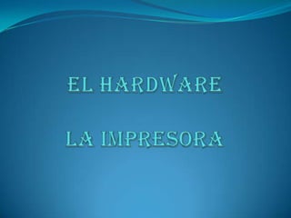Este documento describe los diferentes tipos de impresoras, incluyendo impresoras láser, de inyección de tinta, de tinta sólida, de impacto, de matriz de puntos y de sublimación de tinta. También discute conceptos clave como cartuchos, tinta, papel, velocidad de impresión y posibles problemas de impresión.
