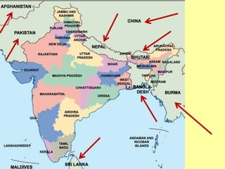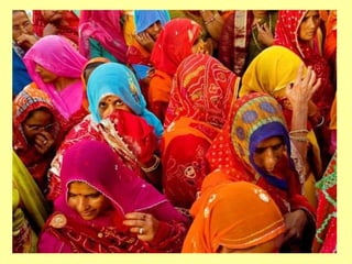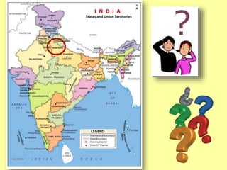La India es un país ubicado en el sur de Asia que está formado por 29 estados y siete territorios, con una población de más de 1.240 millones de personas. Alberga varias de las religiones más grandes del mundo como el hinduismo, el budismo, el jainismo y el sijismo. La cultura india se caracteriza por sus antiguas civilizaciones como la del valle del Indo, sus imperios históricos, y sus tradiciones religiosas y festivales como el Holi y el Diwali.
