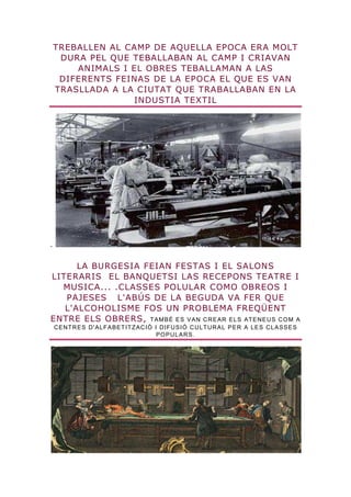 Las clases bajas normalmente vivían en casas de madera con techos de caña y paja, y se alimentaban principalmente de cultivos propios como pan, sopa, cerveza, frutas secas y carnes de animales domésticos. El trabajo en el campo era muy duro y los obreros se trasladaron a las ciudades para trabajar en la industria textil. Mientras las clases altas disfrutaban de fiestas y salones literarios, el abuso del alcohol entre las clases populares y obreros resultó en problemas frecuentes de