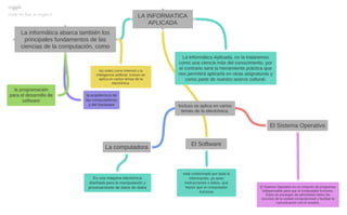 La Informática Aplicada trata de usar la computación como una herramienta práctica para aplicar en otras asignaturas y como parte de la cultura, abarcando principios de ciencias de la computación como la arquitectura de hardware, programación para desarrollo de software, redes e inteligencia artificial. Explica que las computadoras son máquinas electrónicas para procesar datos, el software incluye instrucciones y datos para su funcionamiento, y los sistemas operativos son programas indispensables para administrar recursos y facilitar la comunicación con el usuario