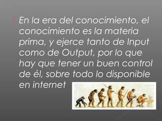 El documento discute los desafíos de la sobrecarga de información en Internet y la necesidad de controlar el conocimiento de manera efectiva. También enfatiza la importancia de establecer objetivos claros, documentar el progreso y verificar la credibilidad y adecuación de la información compartida para diferentes audiencias. Además, señala que una ciudad inteligente requiere capacidad de adaptación a condiciones cambiantes en lugar de depender estrictamente de la planificación tecnológica.