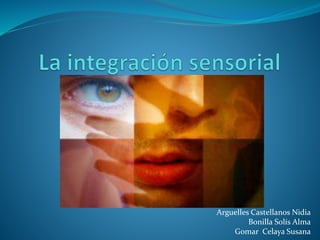 El documento define la integración sensorial como el proceso neurológico que organiza la sensación del propio cuerpo y el ambiente, permitiendo usar el cuerpo de forma efectiva. Explica que involucra la percepción de los sistemas táctil, visual, auditivo, olfativo, vestibular y propioceptivo. Una falla en la integración sensorial puede causar problemas de aprendizaje.