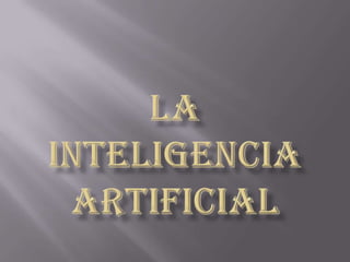 Este documento resume la historia y los conceptos clave de la inteligencia artificial. Define la IA como la capacidad de razonar de un agente no vivo y explica algunas de las técnicas principales como redes neuronales artificiales, algoritmos genéticos y razonamiento lógico. También describe algunas aplicaciones comunes de la IA y categoriza los diferentes tipos de sistemas inteligentes.