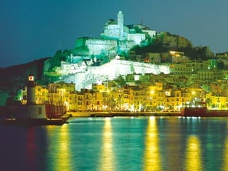 Ibiza es una isla situada al suroeste de Mallorca perteneciente a las Islas Baleares, España. La isla cuenta con playas de arena fina, acantilados escarpados, y el pueblo amurallado de Dalt Vila declarado Patrimonio de la Humanidad. Ibiza es conocida por su vibrante vida nocturna, especialmente en la calle Barcelona donde se encuentran numerosos bares y clubes, y por sus festivales de música como el Flower Power en la discoteca Pacha.