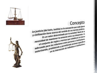 La justicia es el valor por el cual una persona se esfuerza constantemente por dar a los demás lo que les corresponde de acuerdo a sus deberes y derechos, dando a cada quien lo que le corresponde.