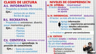 El documento describe el proceso de comprensión lectora como un proceso complejo que involucra aspectos fisiológicos, físicos y psicológicos. Consiste en captar los rasgos gráficos de un texto a través de la percepción visual y luego decodificar, analizar e interpretar el contenido y significado del texto. Involucra el reconocimiento de símbolos, letras, gráficos y la organización del texto para comprender lo que dice el autor.
