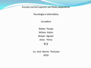 Stephen J. Poplawski inventó la licuadora en 1922 después de 7 años de experimentación. Patentó un aparato mezclador con un elemento agitador montado en el fondo de una taza. Originalmente se usaban licuadoras en hospitales para triturar medicamentos y alimentos, pero luego se difundieron a hogares. La licuadora se ha vuelto indispensable para la cocina moderna al poder transformar rápidamente alimentos en purés y líquidos.