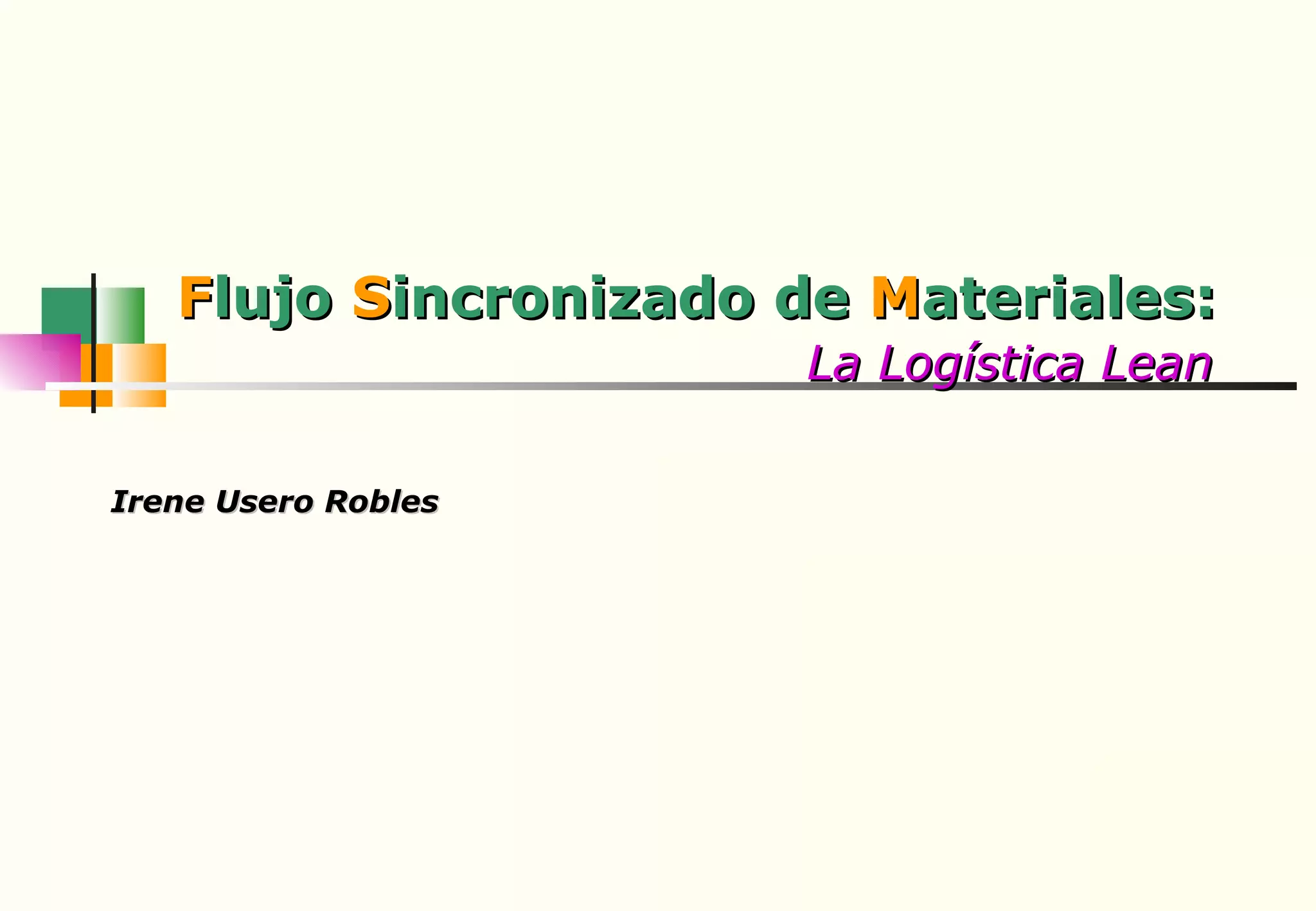 El documento describe el Flujo Sincronizado de Materiales (FSM), un sistema Lean para producir un flujo continuo de materiales dirigido por una programación fija y en secuencia. El FSM implica envíos más pequeños y frecuentes para reducir inventarios, usando un sistema Pull donde la demanda actual guía la producción. El FSM requiere disciplina en la gestión interna y externa de la logística, incluyendo ventanas fijas de envío, monitorización de proveedores, y envíos más pequeños y frecuentes.