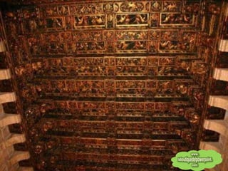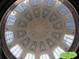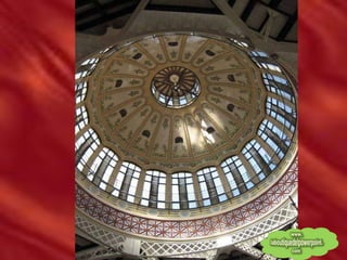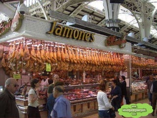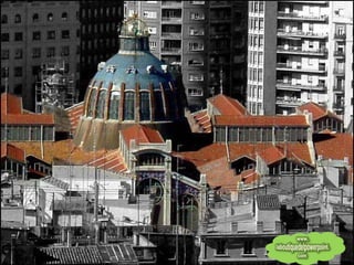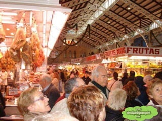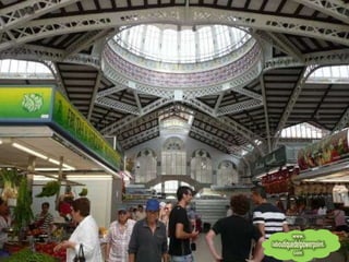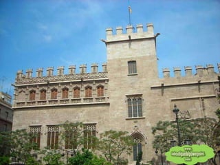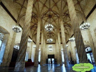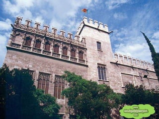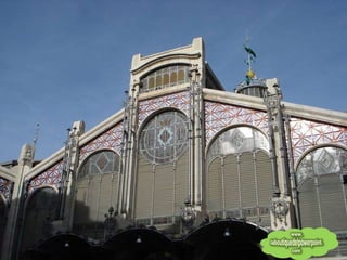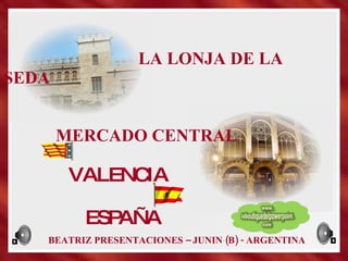El documento resume la Lonja de la Seda y el Mercado Central de Valencia, España. La Lonja de la Seda fue construida entre 1482-1498 y declarada Patrimonio de la Humanidad en 1996. Consta de cuatro partes principales y fue considerada uno de los edificios góticos civiles más bellos de Europa. El Mercado Central de Valencia es una construcción modernista de 1910 que combina metal, cúpulas y vidrio como una catedral del comercio ubicada junto a la Lonja de la Seda.