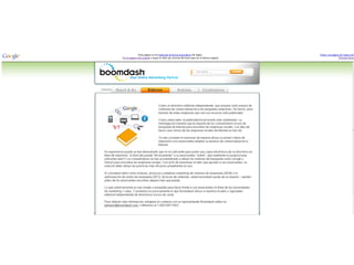 La ventana describe un sitio web dinámico que presenta artículos nuevos y ofrece búsquedas refinadas. También muestra directorios y cupones para hacer negocios en línea.