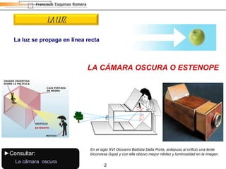 El documento habla sobre las propiedades y cualidades de la luz, incluyendo cómo es percibida por el ojo humano, su comportamiento y aplicaciones en la fotografía. Explica conceptos como la dirección, calidad, medición y color de la luz, así como su importancia en la iluminación de retratos y bodegones.