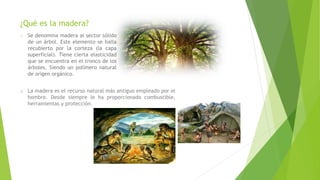 El documento describe la evolución histórica de la madera como sistema constructivo. Explica que la madera fue uno de los primeros materiales usados por el hombre para la construcción de refugios, y que con el tiempo se desarrollaron mejores herramientas para trabajarla. Aunque dejó de usarse como material principal debido a los incendios, hoy se usa ampliamente en la construcción y fabricación de muebles, especialmente en los países nórdicos. También resume las propiedades físicas, mecánicas y eléctricas de la