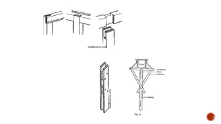 Este documento describe los principales componentes estructurales de una casa de madera, incluyendo las fundaciones, columnas, cerchas, entrepisos, techos y detalles. Explica que las fundaciones aíslan la estructura del terreno y pueden ser superficiales o profundas. Describe que las columnas soportan cargas principalmente a compresión, mientras que las cerchas y vigas soportan cargas a flexión. Finalmente, incluye planos y detalles de la estructura propuesta.