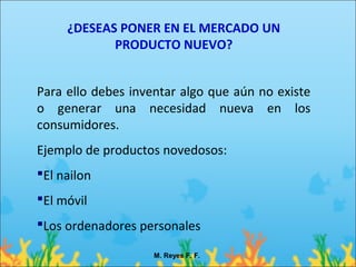 Este documento ofrece varias sugerencias para emprender un negocio, como inventar un nuevo producto, hacer variantes de productos existentes, observar cambios sociales que creen nuevas necesidades, o aprovechar oportunidades en áreas como el cuidado de ancianos, la independencia de personas con discapacidad, el ocio, o la preocupación por el medio ambiente. También recomienda considerar negocios de bajo costo o reparación durante una crisis económica.